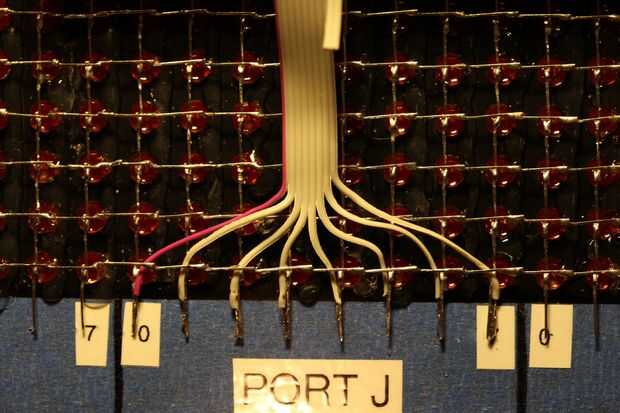 Asegúrese de que soldar el alambre índice (roja) a '0' LED de cada puerto como se muestra. Además, no olvide separar 2 conductores del cable de cinta del 10 conductor - se pueden cortar y desechar.