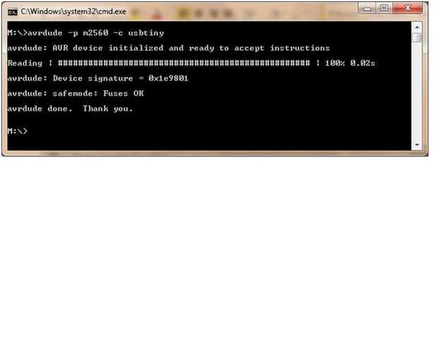 Si las cosas funcionan correctamente, debe ver una respuesta breve con un dispositivo que indica el Atmega es la correcta y los fusibles iniciales son buenos.
