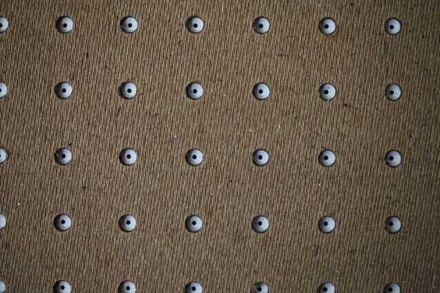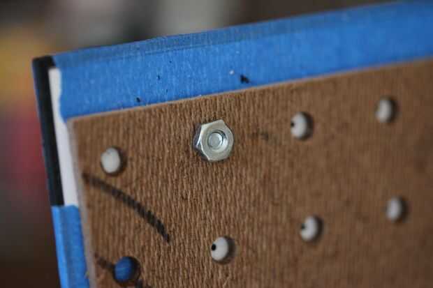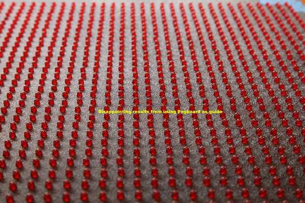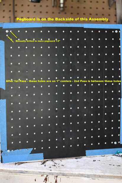 Perforación de 1024 agujeros lleva un tiempo. Mantenerlos en columnas y filas rectas también es un desafío. Para mi prototipo utilicé una pieza de pegboard (1/4" agujeros en centros de 1") como guía. También había impreso una hoja de papel con pequeños puntos en los centros de 1/2". Utilizando la pegboard y el papel como guía, usa 4 tornillos para fijar el perforado de la hoja del ABS. El papel era entre los dos. Taladrar todos los agujeros con los agujeros de perforado. Entonces moví la pegboard ½" a lo largo de las filas y había perforado otro conjunto. Entonces dos veces más para las columnas – otra vez un montón de agujeros! Pensé que esto era una buena guía, ya que taladrar los agujeros con un taladro pequeño. Me ha decepcionado con los resultados. Usted puede ver en las fotos que la alineación no es grande. La diferencia entre 13/64" y los agujeros de perforado de ¼" representaron los problemas.