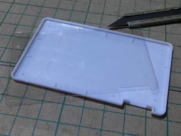 Cortar una placa de plástico de PET un poco más pequeño que el tamaño interno de la MINITA.