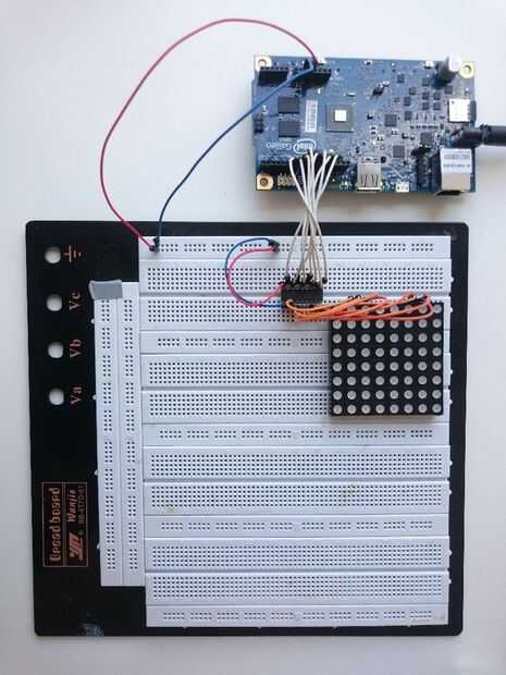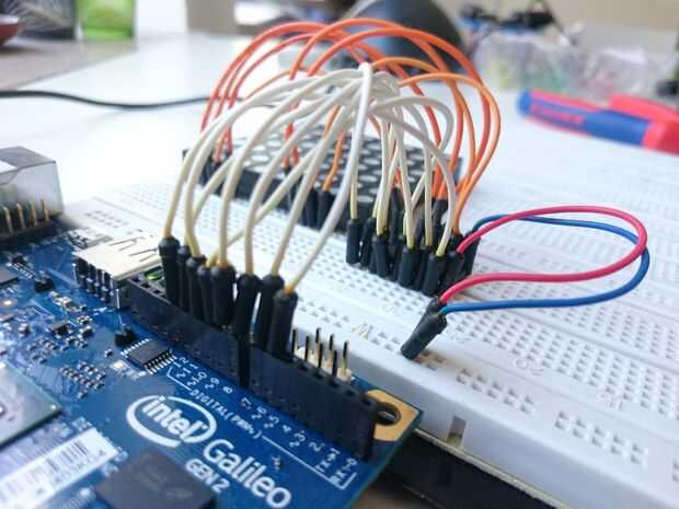 Nota: Debido a algún problema todavía no resuelto con el pin 7 causa parpadeo tenemos que reasignar pin7 al pin 5. El bosquejo que subes a la Galileo ya se encarga de la reasignación.