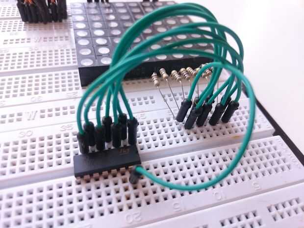 Paso 6: Conectar los LEDs para el registro de desplazamiento