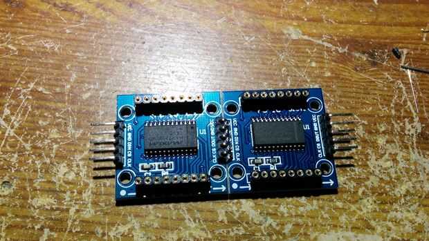 Ahora hacerlo todo otra vez. Tienes dos conjuntos de dos tablas, y cada uno tiene una cabecera de entrada de pin. Un jefe del pin de salida a la soldadura sólo uno de los dos conjuntos. La salida será necesaria asambleas de encadenar los dos juntos.