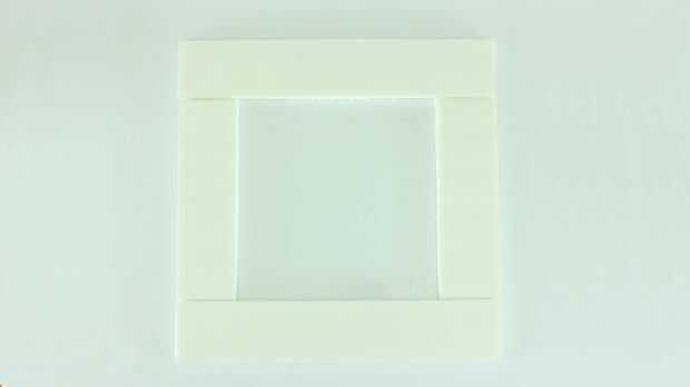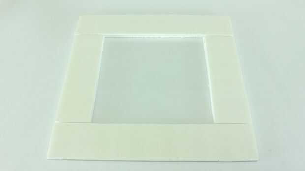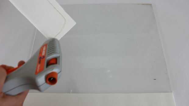 Empecé con una de 16 pulgadas por 16 pulgadas de hoja del plexiglás. Luego corté varios pedazos de tablero de la espuma de 1/8 de pulgada para hacer los lados del soporte. Corté cuatro piezas que eran 3 pulgadas por 16 pulgadas y cuatro piezas que eran 3 pulgadas por 10 pulgadas. Usé pegamento caliente para fijar estos en dos capas alrededor del exterior del plástico. Intente mantener el pegamento caliente como cerca del borde como sea posible. De esa manera no es tan visible.