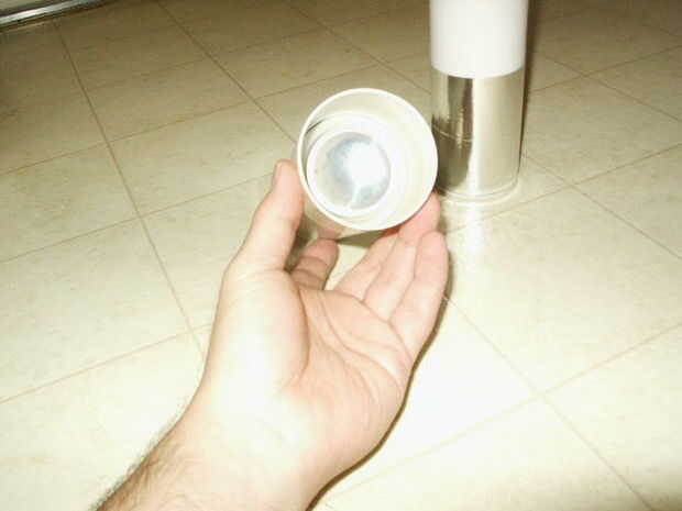 lado superior hacia abajo. Empuje con firmeza y lentamente para permitir el escape del aire. Si la lata se atasca, no forzarlo. Caliente el vaso con el secador de pelo hasta que pueda conseguir la soda puede interior empujado completamente hacia abajo. Cuando se enfría el plástico tienes un electrodo interior ajustada.