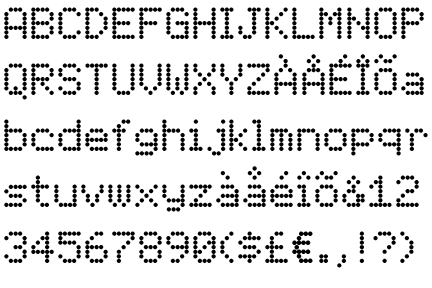El archivo anterior muestra las fuentes de estilo matricial típico, construidas alrededor de una cuadrícula de 5 x 7 puntos. El young'uns por ahí probablemente no tienen idea de lo que una impresora de matriz de puntos es, pero sí, una vez impresiones de texto en la impresora de la oficina de nan como eso parecía.