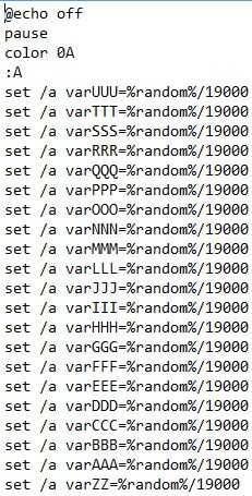 Así que esto es un código que he estado trabajando en un par de días. (Soy un noob en la programación) La mayoría de las cosas que vi por esta cosa de efecto matriz fueron el comando % aleatorio % tan sólo estaba usando números aleatorios no 1 y de 0 por lo que buscado en internet encontró un código incompleto para un generador de números aleatorios y hecho esto: