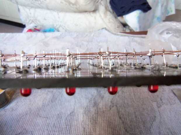 * Doblamos y soldamos los pines negativos de los led´s, de tal manera todos apunten hacia la misma direccion (derecha)