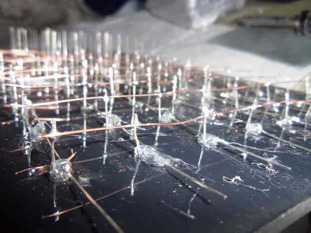 * Sellamos con silicona cada una de las perforaciones, de tal manera se se evite el contacto entre los pines del led