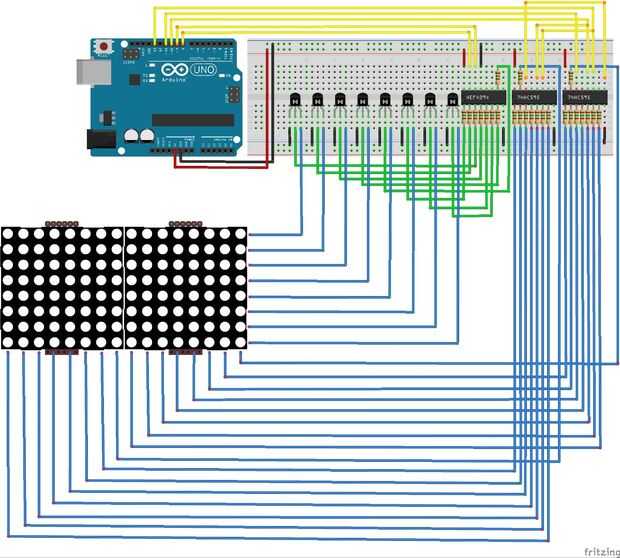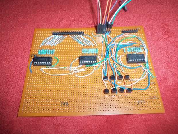 NOTA: Los transistores dos las filas, conectandolos en la matriz de arriba hacia abajo y los registros de dezplazamiento, dos las columnas, conectandolas en la matriz de derecha a izquierda.