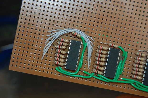 1. Conecte los pines 10 y 16 en cada chip. (imagen 1)