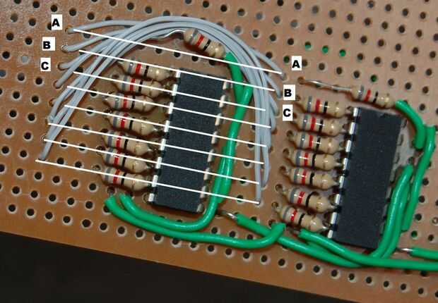 6. Conectar el pin 12 de fichas 1, 2 y 3 juntos. Lo hice en la parte posterior de la Junta.