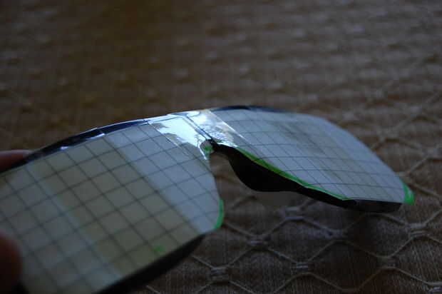 8. Trate de colocar la rejilla de corte en la parte correspondiente de las gafas, asegurándose de que la la las líneas horizontales están en el centro de los listones de las gafas. (Imagen 5 y 6)