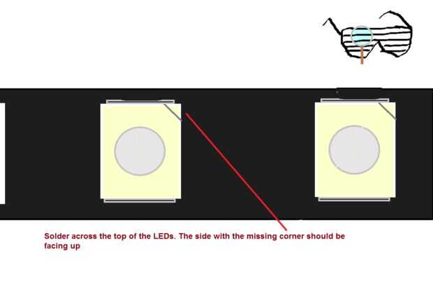 10. Comprobar que todos Los LED son el camino correcto. El lado con la esquina empotrada en la parte superior de las gafas cuando es gastado * Compruebe la última foto de este segmento.