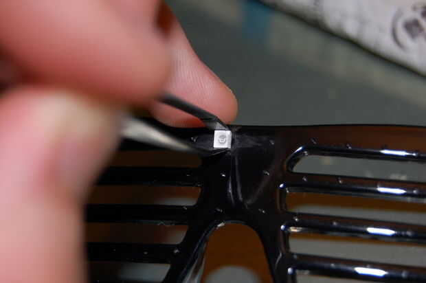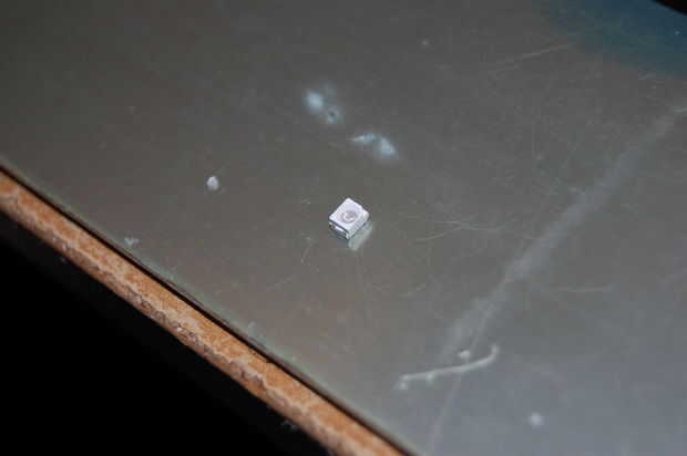 7. El superglue no inmediatamente, así que coloque el LED lo más rápidamente posible y quitar las pinzas. Luego continuar con el siguiente. El pegamento se iniciará dentro de un minuto, así que no coloque otro LED en un lugar vecino durante un par de minutos para no molestar a un LED.
