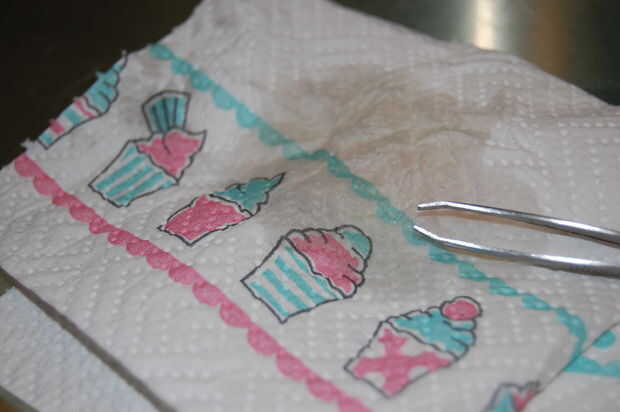 2. Goteo aceite cocción sobre una toalla de papel y limpie los dientes de la pinza con una fina capa de aceite. Esto detendrá los LEDs se adhiera a las pinzas cuando realices el paso 6.