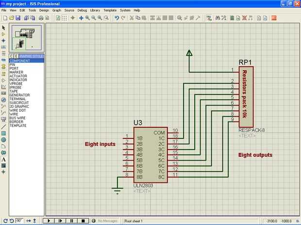 LSN es de ocho canales npn transistor darlington con colector abierto para resistencia (10k o 1 k) debe estar conectado al colector y luego a vcc.