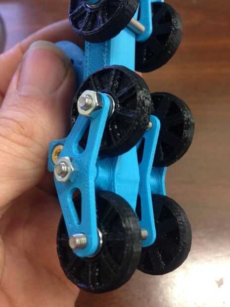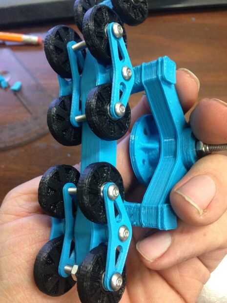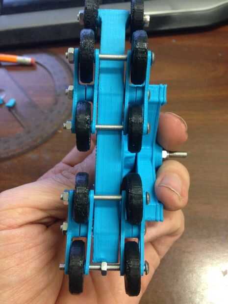 Creo que es más fácil de los ganchos del perno en primera y ejecute un tornillo todo el camino y captura ambas ruedas rodillos al mismo tiempo. Me gusta el look con las tuercas en el interior, pero de cualquier manera va a funcionar. Aviso cómo los pernos pasan completamente por limitar hasta qué punto pueden girar los soportes de suspensión, esto le da cierta suspensión pero mantiene su forma.