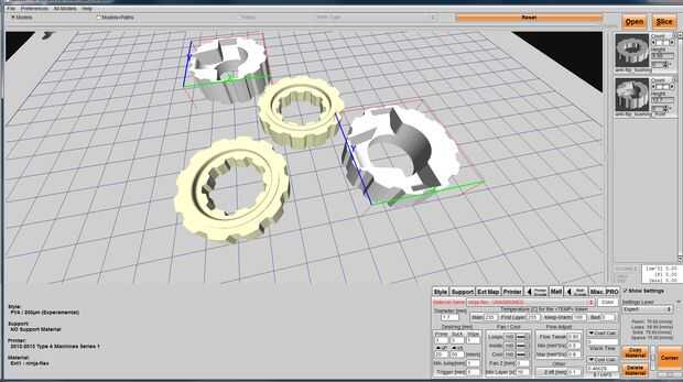 Me gusta estas fuera ninja-flex, imprimir con un grosor de la piel de 1 mm y un relleno hexagonal de 20%. Esto les da cierta flexibilidad y permite las pistas para moverse, sin estresar los ejes. Sin embargo funcionan bien impreso de PLA o abs, sólo serían mucho más rígidos.