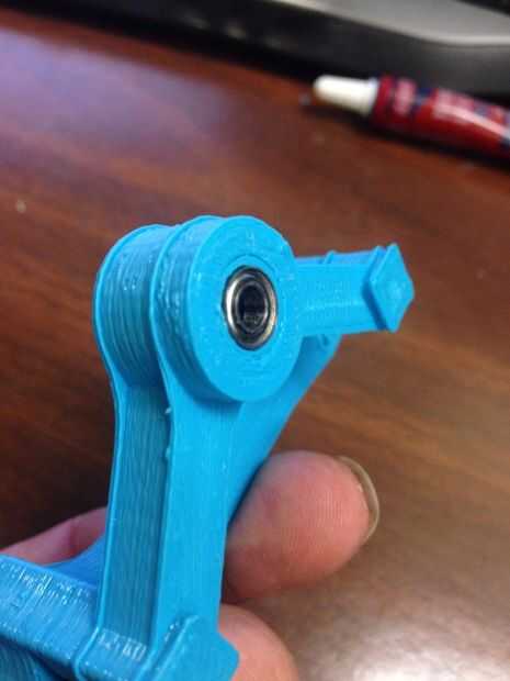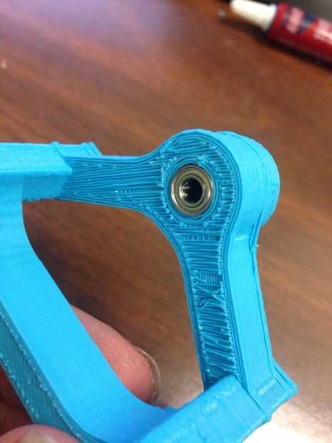 Si va a imprimir la versión con rodamientos, usted querrá añadir ahora. Estos son la mayor rodamientos 4mm interior, 8mm exterior y 3mm de espesor. Usted debe ser capaz de conseguir que comenzó con la mano y luego les asiento completamente con cualquiera de los dos golpes ligeros de un martillo o con un vicio o un pinzas. Trate de conseguirlas en recto, para que las pistas se ruedan lo más suaves posible.
