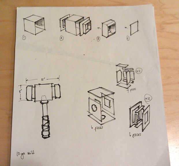 Para el diseño, yo quería este maul a ser original y único, pero también debe ser lo suficientemente simple como para que realmente podía hacerlo. Opciones como los extremos truncados y más pequeño mediados de conexión creado un perfil dinámico (en vez de un rectángulo sólido) sin ser demasiado recargado. Las caras grandes en los lados proporcionan un detalle que no afectan a la construcción de habitación.