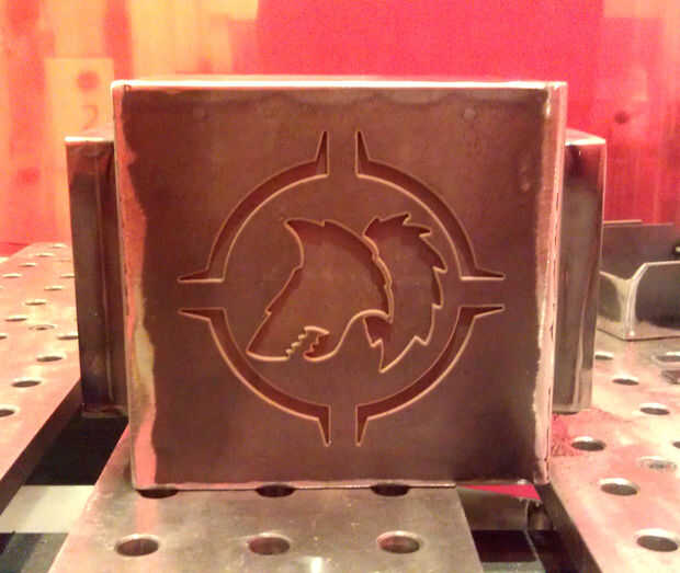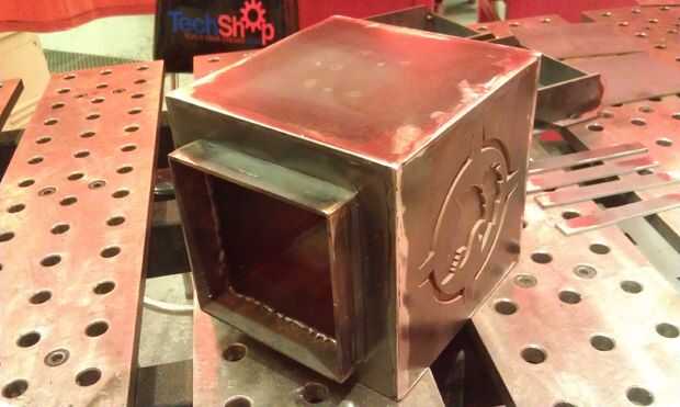 Coloque las conexiones de medianas en el cuerpo central.  Usted notará que todos las soldaduras se realizaron en las esquinas exteriores.  En orden de limpiar las esquinas interiores (no poder molerlos suave) las esquinas exteriores de la sección central fueron realmente dentro de la cabeza de maul y dictaron la orden en el que las partes se reunieron.