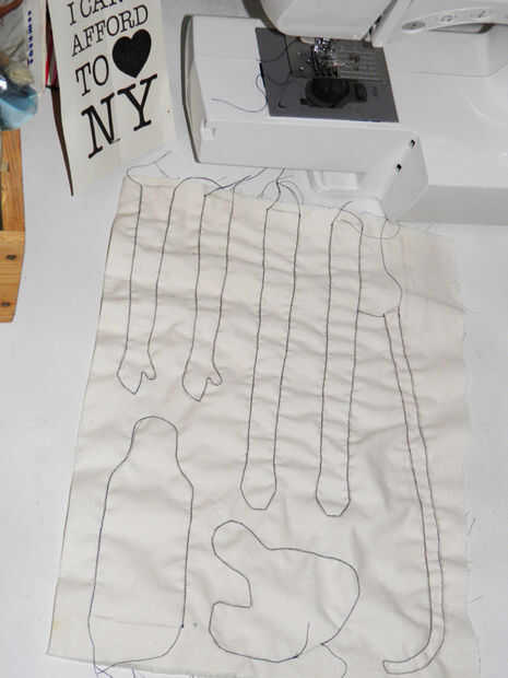 coser a lo largo de las líneas de sólidos, deteniéndose en aquellos-----marcas.