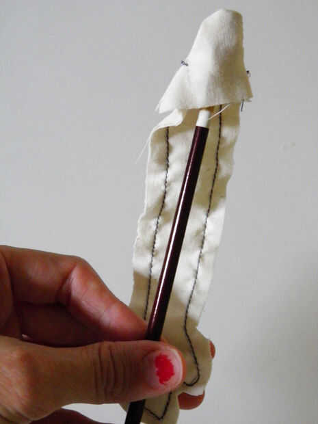 tomar cada pieza y vuelva al extremo abierto. me gusta el extremo abierto del tirón un poco (casi como es abofetear tus jeans) luego tome el extremo de su brocha (yo uso uno con un mango largo flaco) y trabajar sus piezas de adentro hacia fuera.