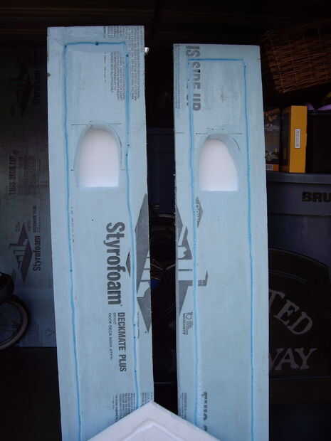 Con la herramienta Dremel con el accesorio de la fresadora, hicimos un canal a lo largo de los bordes de las piezas de espuma de poliestireno. También cortar dos alcobas y con respaldo con piezas sobrantes de la piedra angular.