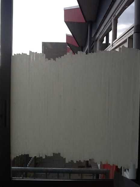 Comenzar con una ventana limpia y lágrima cortó la cinta para el tamaño que necesita. Pegar juntos en una sola dirección.