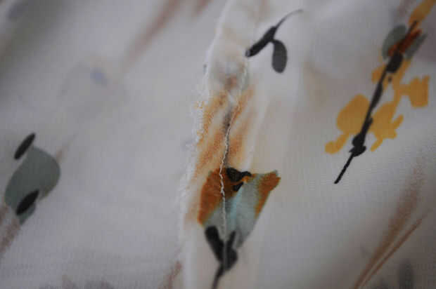 Pin los lados de su falda, adentro hacia fuera. Coser a lo largo de esta sección fijada para cerrar su falda. (También se puede doblar en la parte inferior de su falda para crear un dobladillo – he utilizado tijeras dentadas que impide que la tela se deshilache, por lo que no hacer este paso).