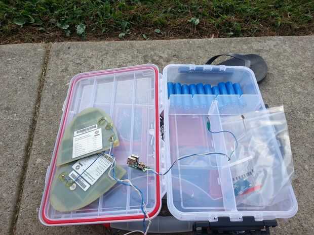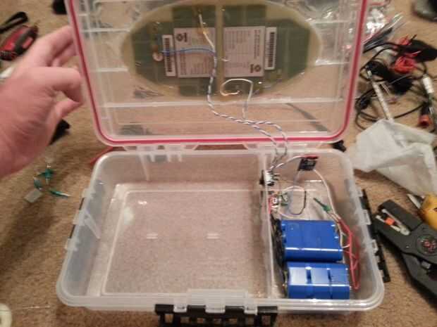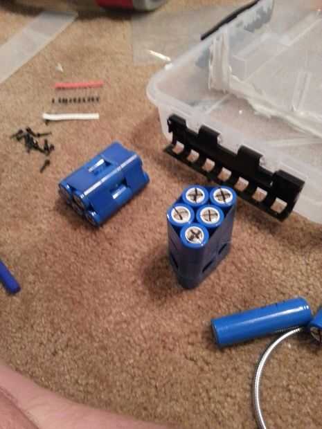 Me puse todos los componentes en el cuadro para ver cómo encajan mejor. Encontré que las pilas y carga todos los componentes caben en el compartimiento del lado que podía colocar cualquier cosa que necesita carga podrían caber en los otros dos tercios de la caja. Liaron las diez pilas en dos grupos de cinco. Una tabla de carga por el sistema.