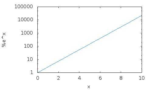 (%i17) wxplot2d(exp(x), [x, 0, 10], [logía]);