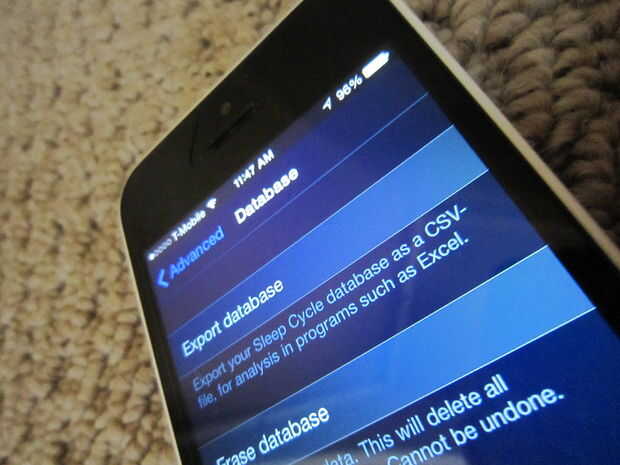 Una vez que tienes una buena cantidad de noches, y usted está listo para mostrar en Plotly, usted necesitará exportar el formulario de datos ciclo de sueño. Afortunadamente, ciclo de sueño lo hace increíblemente fácil. Vaya a Configuración > avanzada > Exportar base de datos y enviar el archivo a un objetivo deseable que se puede abrir en un PC o Mac. (El archivo se guarde como un .csv)