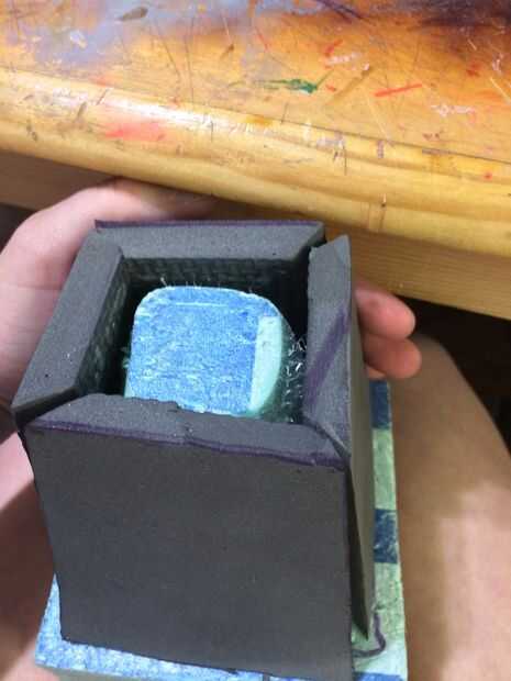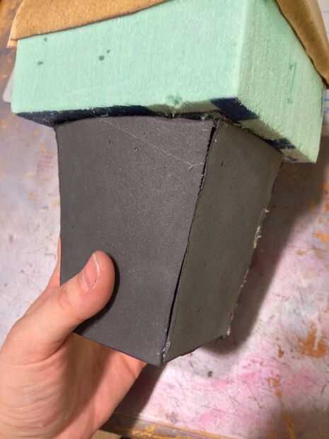 Así como se puede ver añadí la EVA a los exteriores y lo hizo para la cosa entera. Es extremadamente difícil recalentar Worbla que se ha aplicado directamente sobre el poliestireno extruido como funde a baja temperatura y probablemente perderá la forma que usted trabajó tan duro para lograr. La EVA le proporciona suficiente aislamiento que podría calentar a la muerte y no lidiar con cualquier espeleología en problemas.