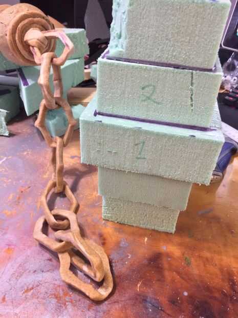 Una vez que una forma general retrasado en el campo, pedazo, pedazo talla estilo que estaba haciendo y comenzar a usar un pedazo de arena pesada de papel de lija a lo largo de lado mi talla para afinar los bordes. Salió bien pero sabía que iba a construir los bordes con espuma y Worbla más tarde por lo que no estaba muy preocupado.