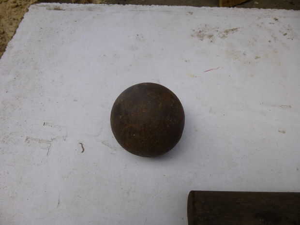 La parte principal es la bola de hierro. Está hecho de hierro y manganeso y de un beneficio húmedo de una planta de cemento. Pesa 2,5 kilogramos.