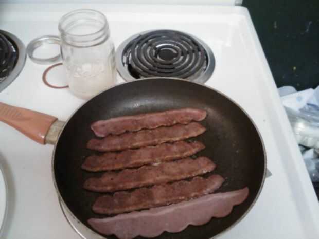 Mi parte favorita! Me encanta el olor a tocino cocinar! Hacer crujiente (en mi opinión) es mejor para esto. Estamos necesitando 2/3 tazas de grasa. Si no producen suficiente usted puede el aceite vegetal para compensar.
