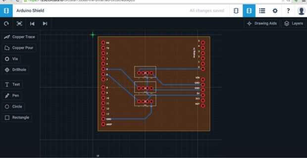 Solía circuito 123D (https://123d.circuits.io/) diseño de un protector del sensor para instalar en el Arduino Yun (ver foto 1 y 2). Para utilizar los sensores de tres grove, diseñé un escudo con tres cabezales para mi tres sensores para conectarse. Busque aquí mis esquemas (https://123d.circuits.io/circuits/753386-arduino-s...) y vista de PCB (https://123d.circuits.io/circuits/753386-arduino-s...).