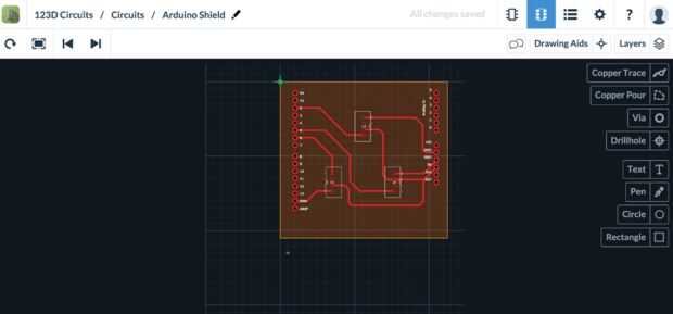 Hice el tablero del PWB con la máquina del fabricante de PCB en el laboratorio de arte interactivo de medios de Shanghai de la Universidad de Nueva York. Puede encontrar opciones en línea de bajo coste de prototipos PCB si no tienes acceso a un PCB de la máquina.