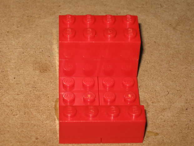 un Ipod touch o iphone fácil y rápido soporte para ver videos.Paso 1: partes 6 x 2 x 4 ladrillos2 x 2 x 2 ladrillos1 x 16 x 8 placaPaso 2: Paso 1 Acople 2 ladrillos de 2 x 4 juntos como escaleras.Repetir una vez.Paso 3: Paso 2 Hacer una "T" con