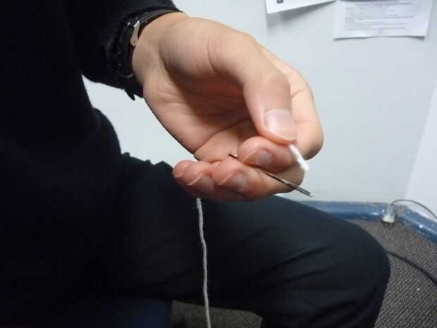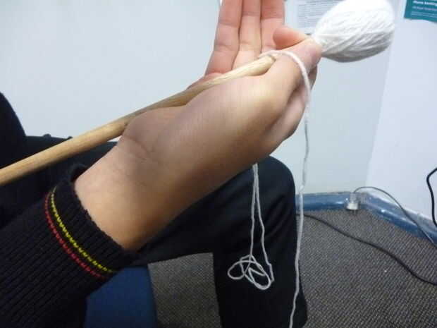 Cuidado con este paso y el siguiente, de la creación de nudos corredizos que se convierten en realmente apretado e imposible de desatar. Esto me pasó en este mazo muy fotografiada y era casi incapaz de terminarlo. Para evitar esto, mueva la aguja lentamente y constantemente, desenredarse cualquier hilados retorcidos.