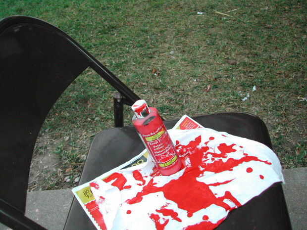 Aplicar gotas de pintura roja, salpicaduras, goteos, no cepillado.