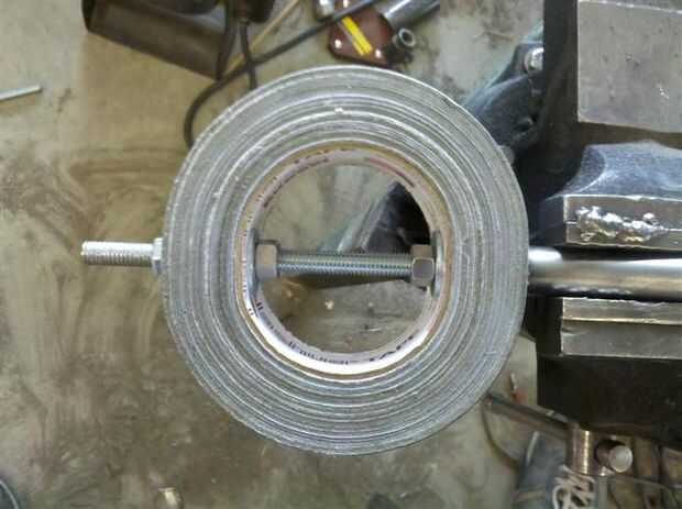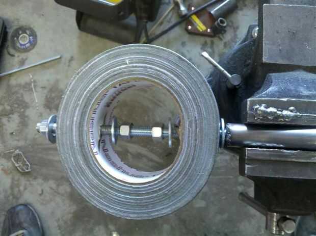 Finalmente, fije la manija al rollo de cinta de pato con tuercas y arandelas.
