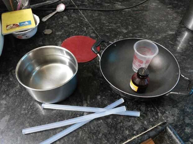 2) una cacerola antiadherente---o algo para los palillos del pegamento del derretimiento