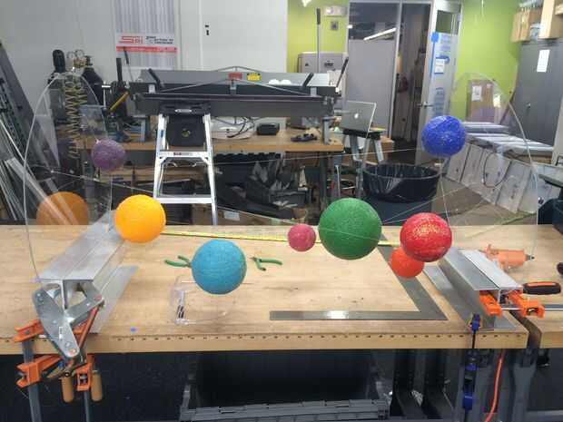 Establecer sus tapas (ver paso 3 para la construcción del casquillo) 36" aparte. Si puede sujetarlos en algo para mantenerlos todavía, lo recomiendo. I fijar algunos soportes en L a la mesa y acuñan las tapas entre ellos. Con una 1/16 broca, perforar agujeros en cada tapa para los hilos de la línea de pesca (Si utilizas 5 hilos, 5 perforaciones en cada tapa). No es esencial para los agujeros alinear como el interior del martillo de Koto ya es desorganizado, por lo que no te preocupes alineando cosas perfectamente!