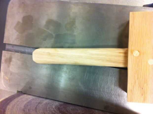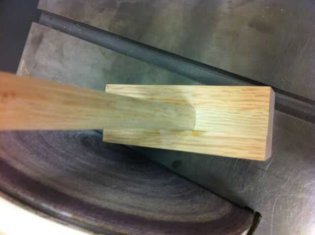 El siguiente paso es pulir las clavijas y el siempre del mazo y la lijadora de banda lijadora de Palma. Yo también lijar el mango en este momento.