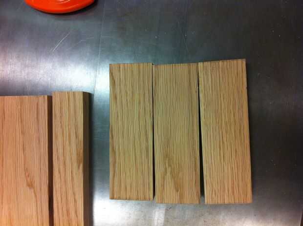 Tome sus 6" pieza y cortar en tiras de 1-15/16" de ancho. Esto es para si tu hoja 1/8" ancho que resulta para mí en TechShop.