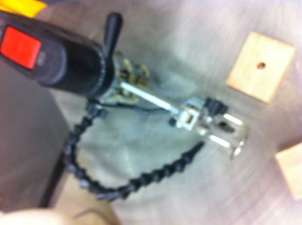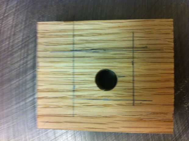 Después de la perforación usé la Sierra de calar para cortar rectángulos en el centro. Hice mía por adivinar el tamaño. Recomiendo esto debido al peso que se podría agregar. Usted podría necesita estrecho y largo o corto y ancho en base de su peso.