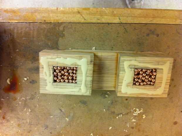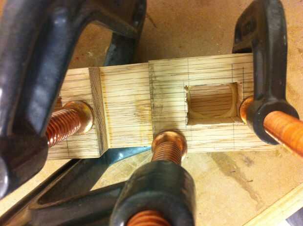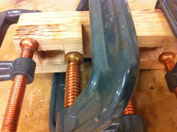 En primer lugar uno de sus listones que corte y pegue las piezas de dos centro en los extremos. Abrazadera y comer palomitas TechShop mientras el pegamento se seca.